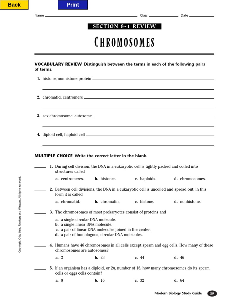 Cell division centriole centromere chromatid chromatin chromosome cytokinesis dna interphase explain your answers. SECTION 8-2 REVIEW ELL IVISION 41 HRW material copyrighted under notice appearing earlier in this work. Chromosomes page 244 1.