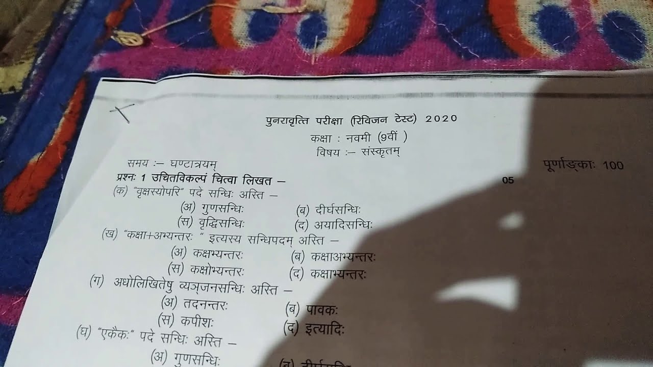 Class 9 Sanskrit Ka Revision Test Paper 2020 Youtube