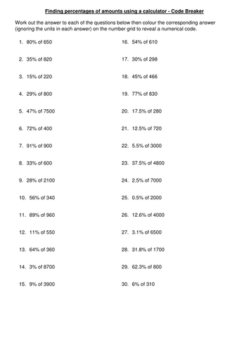 Percentages Of Amounts Using A Calculator Teaching Resources